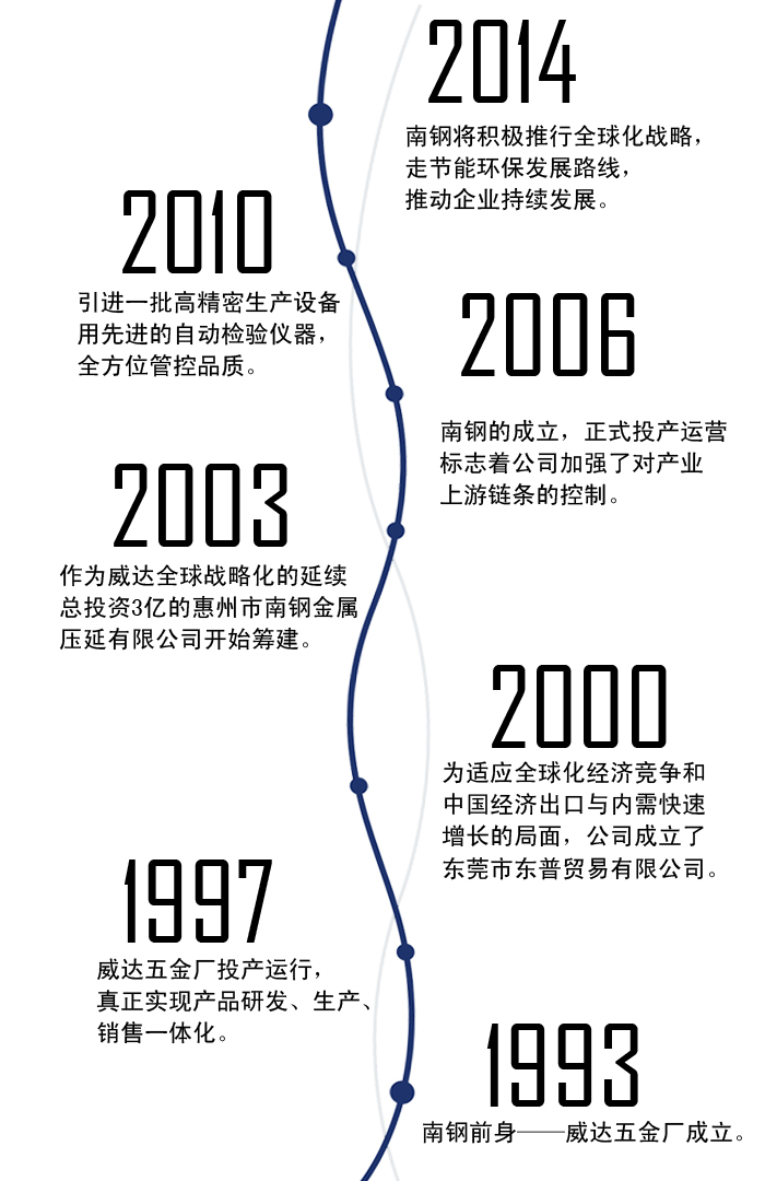 2003年,作為威達全球戰略化的延續,總投資3億的惠州市南鋼金屬壓延有限公司開始籌建。
