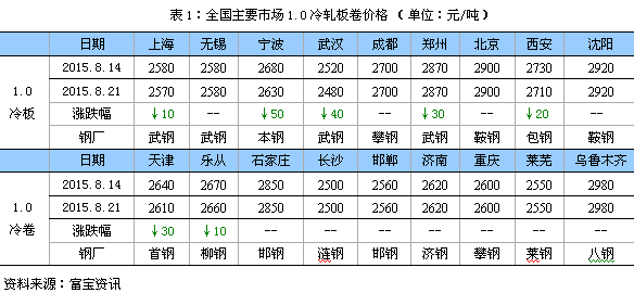 本周冷軋市場穩中有弱。具體來看,華東市場大體持穩,商家根據自身庫存適度調整,1.0mm資源卷板在2550-2600元左右,另外一些新貨也陸續到達,但出貨較前期回落,后市信心顯不足;華中武鋼市場受日照低位資源影響,武鋼報盤回落在2480元,日照在2350-2400元,;長沙較為平穩,雖漣鋼下旬政策跌70元,但商家仍以觀望為主;華北天津市場穩中趨弱,主要最近唐鋼首鋼到貨增多,前期規格短缺的支撐力度轉弱,加之下游需求萎靡且觀望采購,商戶日成交量多在兩百噸,個別甚至創最低日成交量,致使心態偏空,更加傾向套現;華南市場盤穩運行,成交偏弱,目前柳鋼價格2650-2670元/噸左右的水平,另外武鋼近期將加大投放量,后市不利因素漸增。
